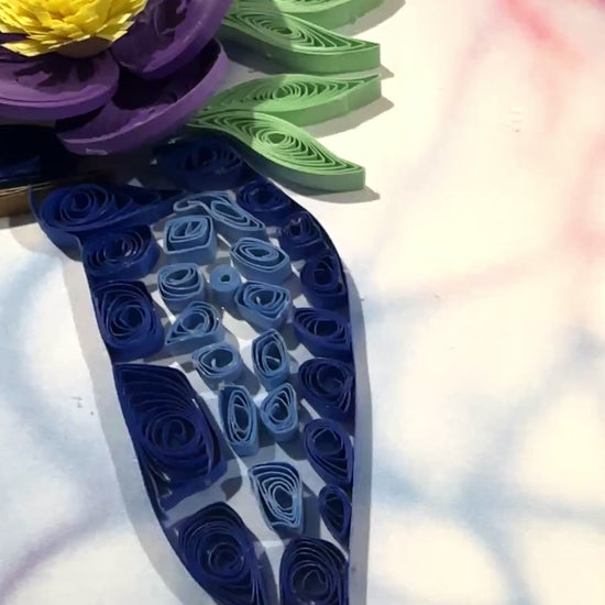 This mesmerizing paper quilling art showcases a stunning sea turtle, its back adorned with exquisite flowers of tropical and vivid hues.